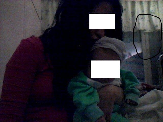 Mielestäni aivan tavallinen kuva naisesta ja vauvasta. Ympyröidyllä alueella ei ole mitään.